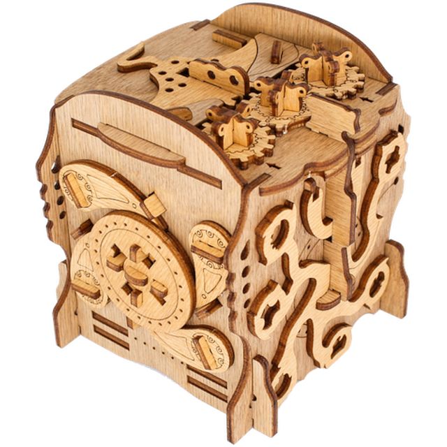 The Cluebox is an interactive puzzle box with various puzzles and tasks that must be solved one after another to open the box.